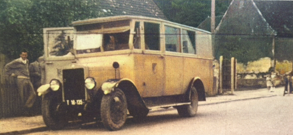 Der „Blaue Blitz“ Über drei Jahre leistete dieses umgebaute Feuerwehrauto dem Fußballclub Jenbach treue Dienste. Sekt-Leiter Peter Karl und sein erster Maschinist Locher Karl vollbrachten mit diesem Bus wahre Wunderdinge.