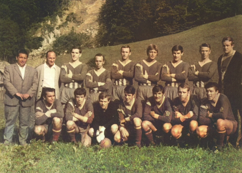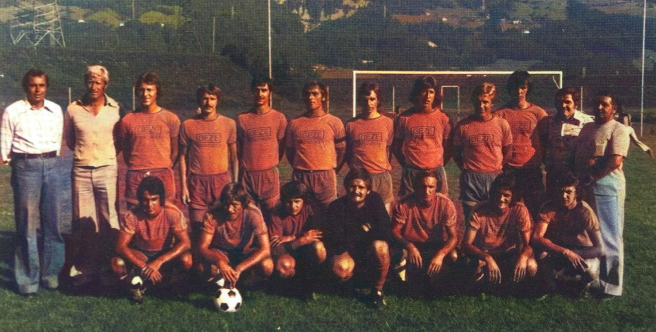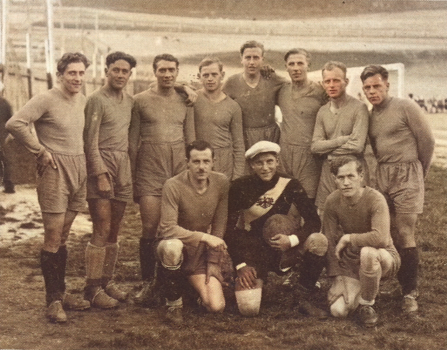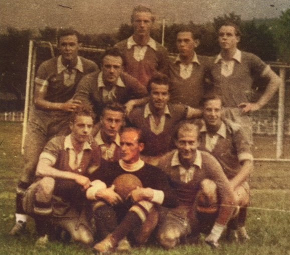 Die Gründungsmannschaft aus dem Jahr 1933 vor dem Spiel in Schwaz: Stehend von links nach rechts: Ruech Josef, Pfister Georg, Husar Karl, Maurischer Alois, Groll Franz, Winner Otto, Münch Franz, Hell Josef Vorne von links nach rechts: Penz Franz, Plascheck Franz, Lamb Herbert