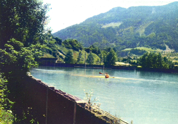 1956 wurde der Sportplatz durch ein Hochwasser so stark überschwemmt, dass Kinder mit Booten und Flößen darauf paddelten – die Notwendigkeit einer Platzaufschüttung wurde immer offensichtlicher.